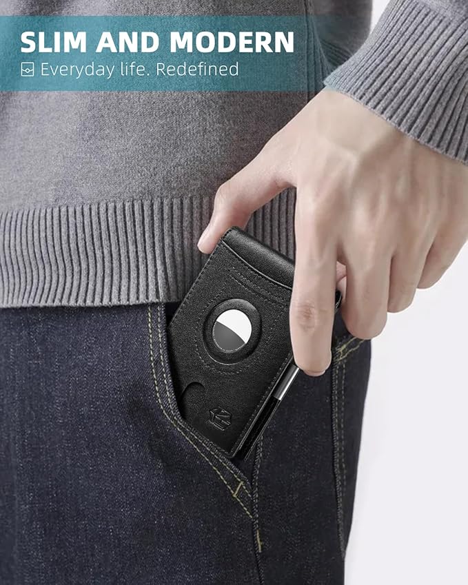 - ๐๐๐๐๐ ๐๐๐๐ ๐๐๐ ๐๐๐๐๐-๐๐ ๐๐๐๐๐๐๐๐ - Meet our latest slim airtag wallet with upgraded money clip! Sized 4" x 3.5" with money clip, this slim wallet for men is equipped with refined hinged money clip, which takes up less room than the wide money clip, reducing the bulk. It features ๐ญ0 ๐ฐ๐ฎ๐ฟ๐ฑ ๐๐น๐ผ๐๐ with quick access slot on the front, 10 on the sleeves and 1 built-in air tag pocket on the back