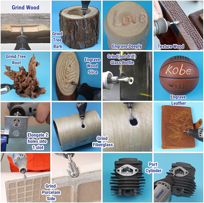 - Versatile: carving, chamfering, cleaning, contouring, cutting, deburring, elongating, engraving, grinding, meatalworking, milling, polishing, porting, sculpting, shaping, shaving, tooling, trimming, metal, wood, stone, steel, plastic, etc.