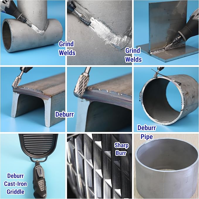 - Recommended Uses For Product : Grinding, deburring, cutting, shaping, porting on metal, steel, aluminum, wood, stone. Works with die grinders and rotary tools. Ideal for metalworking, fabrication, carving, and tool maintenance. Grinding, deburring, cutting, shaping, porting on metal, steel, aluminum, wood, stone. Works with die grinders and rotary tools. Ideal for metalworking, fabrication, carving, and tool maintena… See more