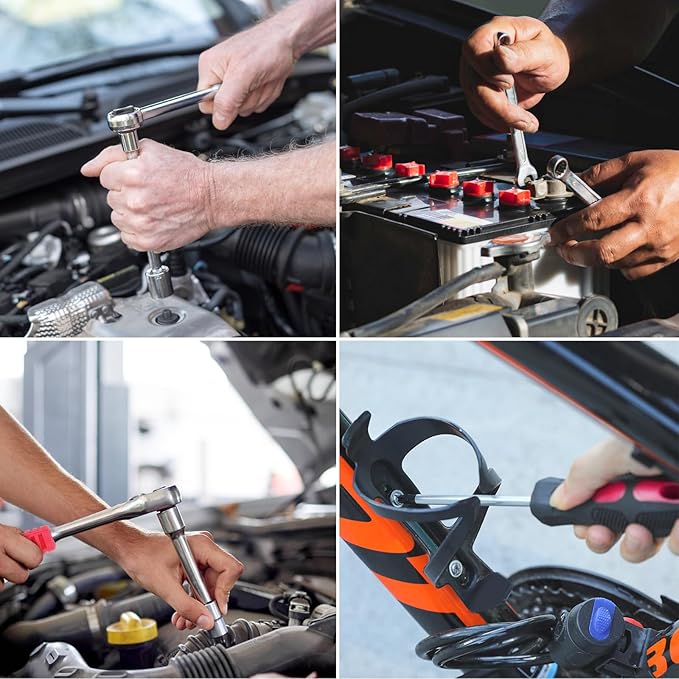 - Include utility knife, water pump plier, screwdrivers, diagonal cutting plier, combination wrenches, ratchet handle, level, bits, hex key wrenches, spark plug socket, drive Adaptor, drive extension bar, bit driver handle, adjustable wrench, ong nose plier, drive-sockets.