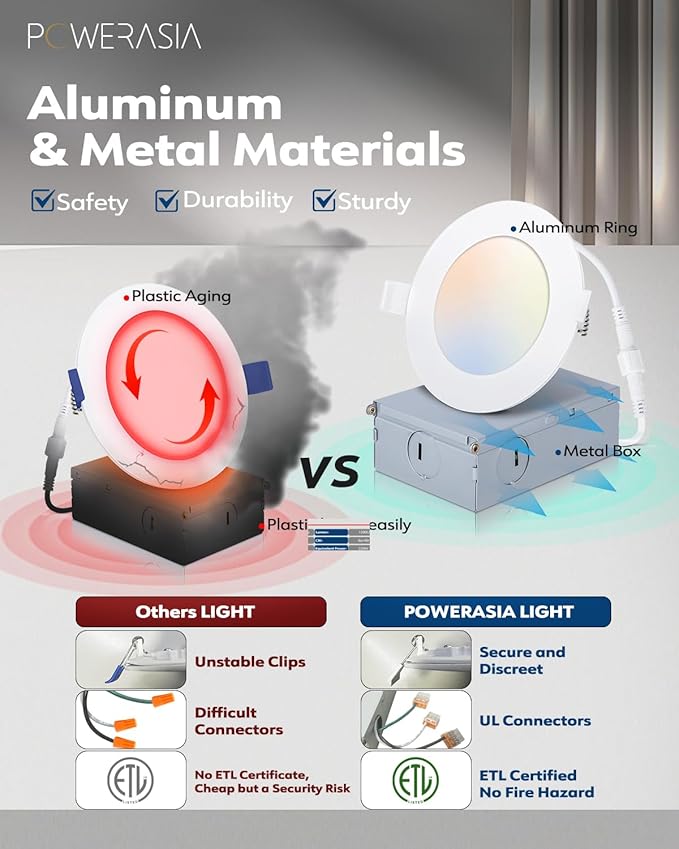 - ๐กใHigh Brightnessใ POWERASIA 90+CRI technology brings true color rendering to your house. The 8-inch slim lights use the new generation of LED chips with higher lumens and lower power. 1400LM 18 Watts, which equals to 250W incandescent lamp, saving you up to 88% in energy costs.