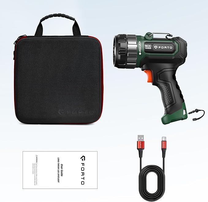 - 【Adjustable Focus with Long Range】FORTO spot light features a unique adjustable focus, allowing you to change the lighting distance. With a maximum reach of 823 meters, you can illuminate exactly where you need, whether for outdoor activities or work.