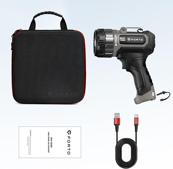 - 【Adjustable Focus with Long Range】FORTO spot light features a unique adjustable focus, allowing you to change the lighting distance. With a maximum reach of 823 meters, you can illuminate exactly where you need, whether for outdoor activities or work.