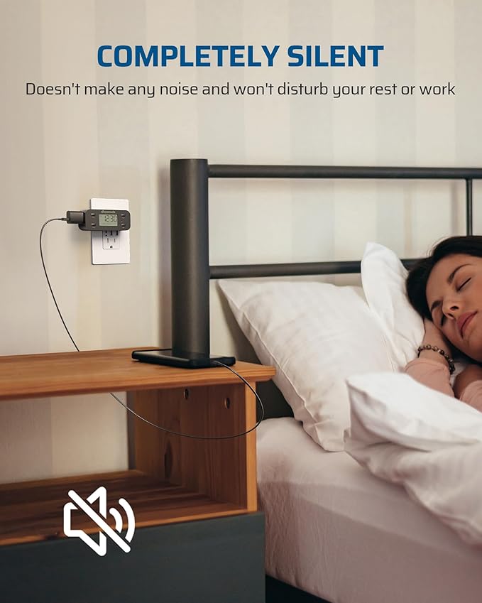 - [Backup Battery & Quiet Performance] Our indoor outlet timers come with a backup battery that retains your programmed settings for up to 3 months during power interruptions or disconnections; enjoy quiet performance, making them an excellent choice for bedrooms