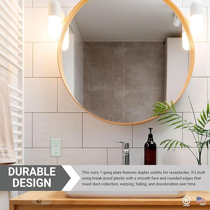 - Safety Certified and Versatile Design: UL Listed for electrical safety compliance, this wall plate meets rigorous quality and performance standards. Its neutral ivory color and minimalist design make it suitable for a wide range of décor styles, from industrial to contemporary, and ideal for homes, offices, workshops, and more.