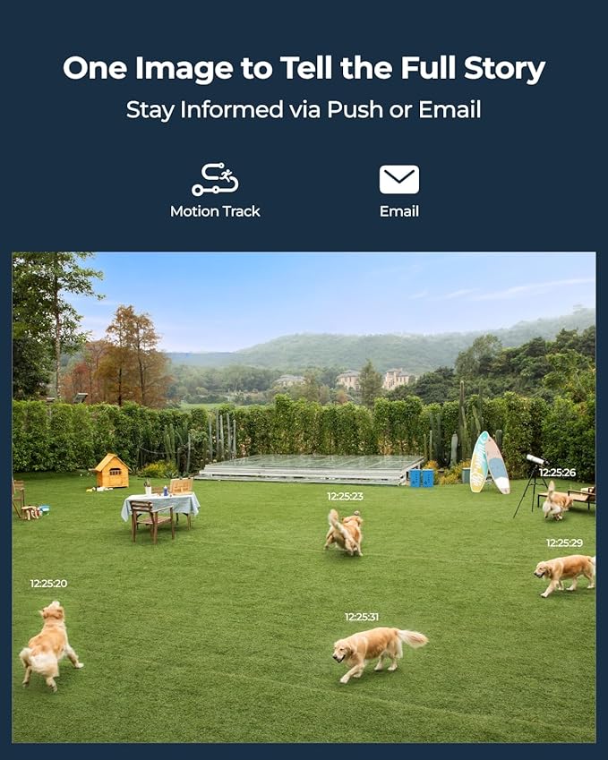 - AI DETECTION & MOTION TRACK: Armed with cutting-edge AI technologies, Duo 3V PoE makes security smarter than ever. It enables real-time alerts for detected people, vehicles, and animals, as well as customizable detection zones and alarm schedules. Equipped with groundbreaking motion track technology, it saves your time by sending a picture summarizing all movements of targets in 15 seconds to your Reolink App or email. No need for downloading videos to check the events.
