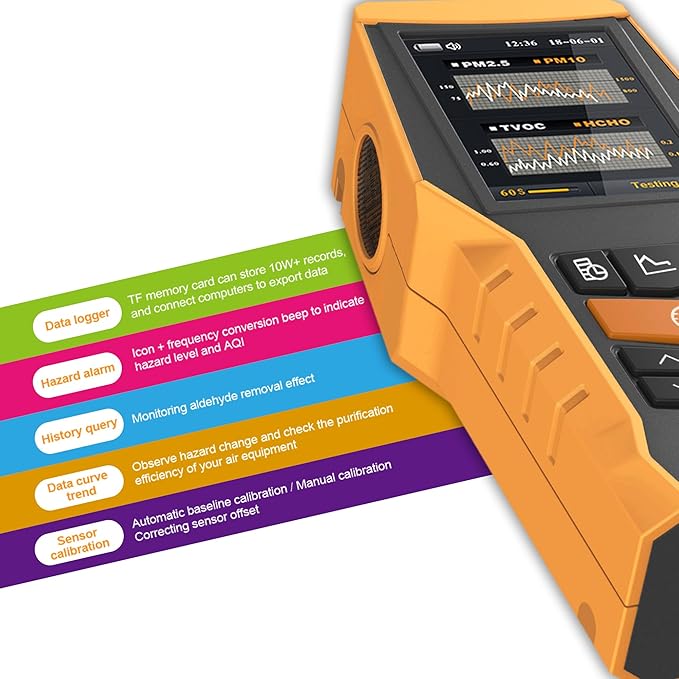 - 【Multiple applications】Indoor air quality analyzer is suitable for check the air pollution in your home and testing the chemical gas. It can be used to monitor air quality for allergies, asthma, and more. HAP hazardous airborn pollutant Standards Index indicate