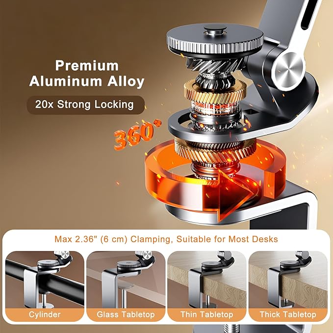 - 【STABLE SUPPORT】 This iPad desk mount features 4 upgraded reinforced joints for extra stability. The strengthened joints provide stable, wobble-free support, even with long-term use, preventing slipping. Due to the additional reinforcement at the joints, adjusting the arm may require some effort.