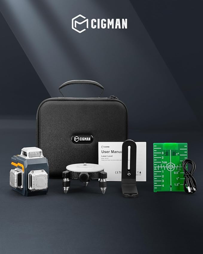 - 【App Connection & Bluetooth Technology】This laser level uses Bluetooth technology. After connecting to the CIGMAN APP, you can easily control the laser settings from anywhere in the room. On the application page, you can choose to orient the laser vertically or horizontally or turn pulse mode on/off; reduce your walking, and make your work more convenient