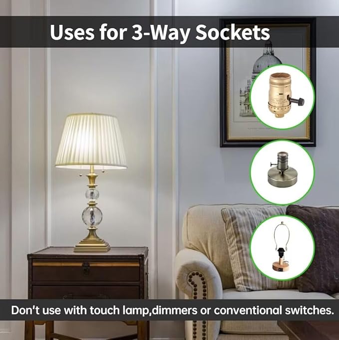 - Easy Installation: The 3-way LED light bulbs have a standard E26 base ,and are plug-and-play. These 3-way A19 LED bulbs only fit in 3-way bulb bases.