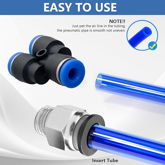 - WIDE APPLICATION: Push-to-connect fittings are suitable for PU / PA / PE / PVC tubes or hoses. They are widely applied in automotive, manufacturing production lines or truck or trailer repairs. Besides those, industrial workshops, air brake connections,towing machine hose connection and air brake connections or lawn mower repair