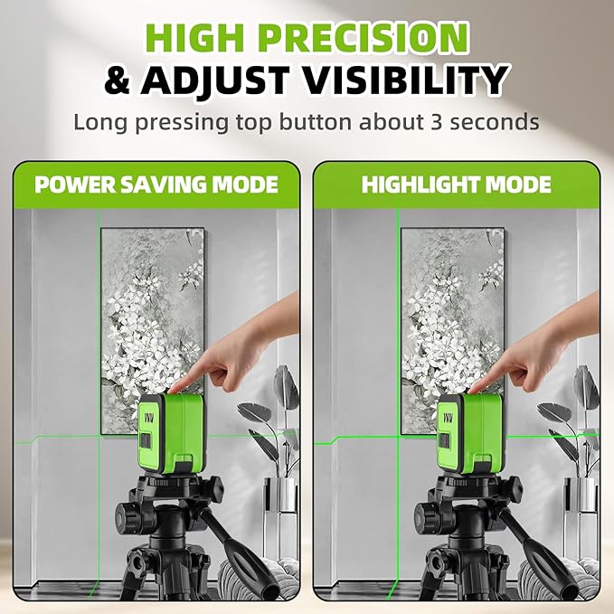 - ๐ฅUpgrade Dual Modules -VNW line laser has two laser sources. Laser level of professional laser head is more accurate.Projects bright horizontal, vertical & cross โlines onto flat surfaces and levels, more stable than other common equipment.Class II, power output <1mW