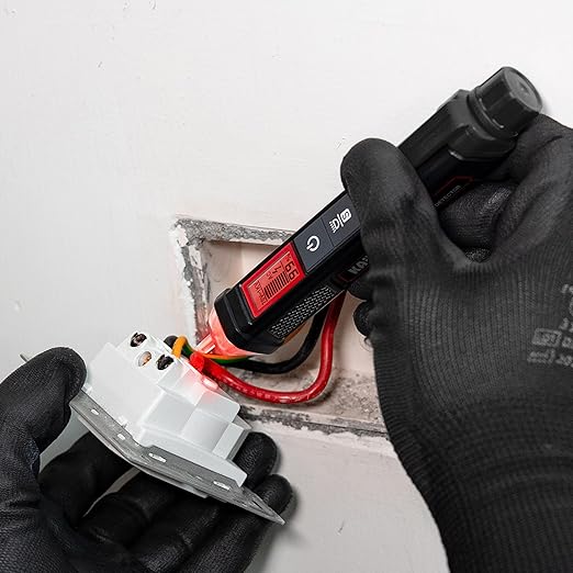 - NON-CONTACT: With NCV inductive probe for AC voltage; Just place the tip near a terminal strip, outlet, or supply cord. When the tip glows red and the pen beeps, you know there's voltage present. The live wire detector can automatically detect the live or neutral wire. Ideal for breakpoint Test. Handy circuit tester for electricians, homeowners