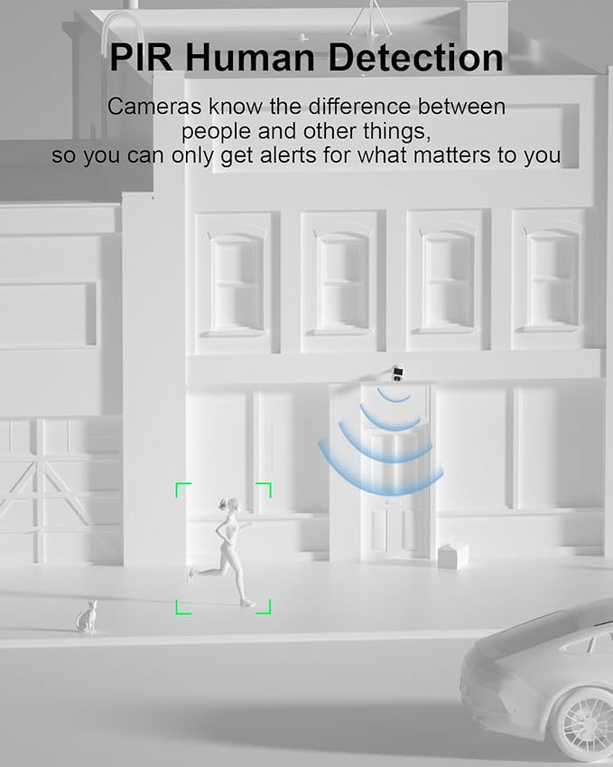 - 【PIR Motion Detection & Real-time Alerts】ANRAN solar camera equipped with advanced sensors and intelligent algorithms, camera can quickly detect the activities of people in front of the lens, and reduce false alarms and instant alerts. At the same time, it start to record and send real-time notifications to your phone, reminding you to check suspicious activity in time.