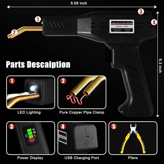 - Wide Application: Repairs at least 98% of the plastics on the market. Suitable for repairing: bumper, dashboard, car fender, mower hood, lamp holder, plastic ring, radiator, spoiler, handles, headlights, plastic wings, car and motorcycle plastic device, etc