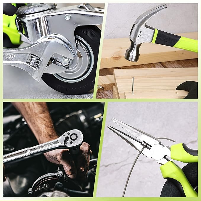 FASTPRO 198-Piece Household Tool Set, Home Repairing Tool Set with Toolbox, SAE Mechanics Hand Tool Kit for DIY, Home Maintenance, Green