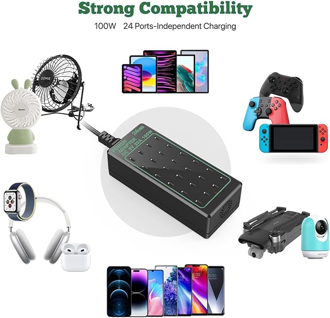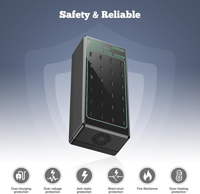 - ✅【Package and Service】 100W 24-port USB C desktop charger, user manual, 59-inch/1.5m detachable power cord, our hassle-free 12-month warranty and friendly customer service. Simply use this USB charger to charge your devices with 100% peace of mind!