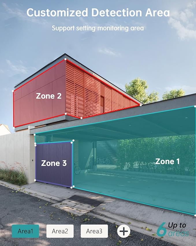 - AI Detection & Real-time Alerts: Wireless outdoor security camera solar powered using the latest AI algorithm and PIR sensor that can identify person, pet, vehicle, and parcel, support set alarm plans, and adjust sensitivity levels to minimize false alarms. Once motion detection is triggered, a notification will be sent to your mobile APP and the video or image will be stored in the memory card or cloud storage so that users can more accurately capture the content they care about in real-time