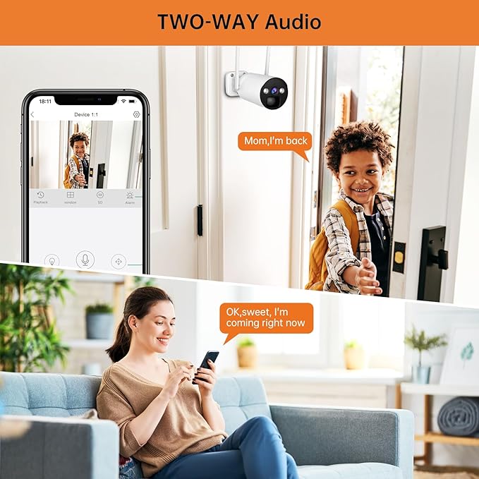 - TWO-WAY AUDIO & IP66 WATERPROOF: There are microphones and speakers on the solar powered home security cameras system which supports real-time response. It will be more convenient for you to communicate with family or guests through the APP. Adopting ingenious IP66 weatherproof housing, solar security cameras can be used both indoor and outdoor with longer lifespan.