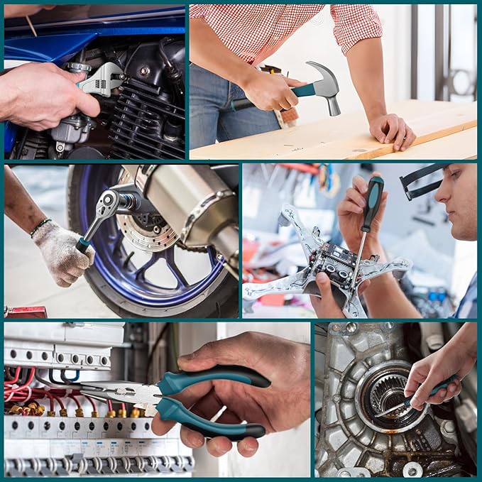 - 【Portable Storage & Special Present Choice】 All the hand tools and Cordless tool are packed in a unique complete tool box set for storage and portability. Each hand tool fits snugly into its respective place to prevent moving around and scraping. All tools set are neatly stored in a sturdy case to keep tools secure, clean, organized and easy to find. This tool kit set is nice for Mother's Day, Father's Day and it is a nice option as tool present for Dad, Mom, Grandfather, Grandmother, Brothers, boyfriend and lover friends in Newyear, Easter Day, Thanksgiving Day, Christmas Day, Birthday, Anniversaries Days.