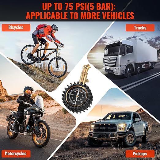 - PRESSURE RANGE 0-75 PSI: ETENWOLF’s tire gauge can measure pressure of pickup, motorcycle, truck, bike, SUV, RV or ATV