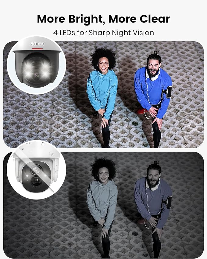 DEKCO Security Cameras Wireless Outdoor, Solar Powered, Panoramic PTZ, Auto Motion Tracking, True 2K, Color Night Vision, Spotlights, 2-Way Talk, 2 Pack