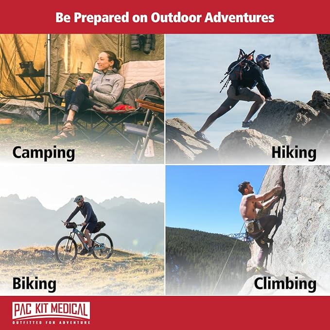 - Comprehensive Outdoor First Aid Kit: Contains 108 essential first aid supplies, including adhesive fabric bandages, antibiotic ointments, BZK antiseptic towelettes, burn cream packets, ibuprofen, gauze pads, wound treatment, blister prevention and sting relief