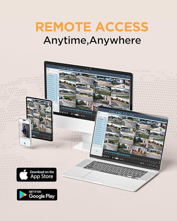 - Remote App Monitoring: GUARD VIEWER mobile App allows you to remote access the NVR system anytime, anywhere. Professional and user-friendly functions, such as live viewing, playback,push notifications.