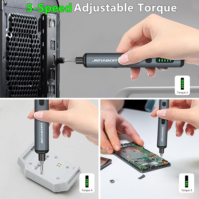 - 【Precision Torque Set】Equipped with a torque of 0.1 Nm to 0.35 Nm, as well as a manual torque of 3 Nm, this mini electric screwdriver offers accurate torque forces for your handy work needs. Ideal for tablet computers, watche, cameras, precision instruments, etc.