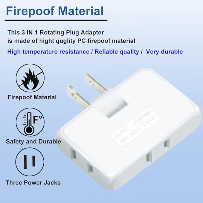 - ( Fireproof and durable material ): This rotating plug splitter which is made of PC flame retardant material is the perfect addition to any indoor AC plug adapter use.