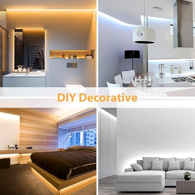 - 【Tunable Color Temperature】- The tunable white led strip includes 1200 super bright LEDs. 24V working voltage and provides daylight white 6000K, neutral white 4500K and warm white 3000K. Upgraded LED and side-brightness design make led strip lights shine brighter than others, 120 Degrees projection range offers large Illumination coverage, and The light is very even down the strip. Whether you are working or relaxing, there are many lights to meet your needs