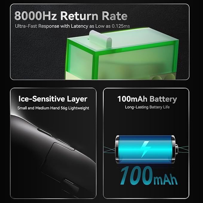 - 【AJAZZ AJ159 APEX】This ergonomic wireless gaming mouse is customized for enhanced performance by utilizing the latest PAW3950 sensor to deliver best-in-class accuracy and precision for fast-paced competitive gaming, delivering up to 42K programmable DPI, 8000hz/0.125ms polling rate, 750 IPS speed and 50g acceleration. Take your gaming experience to the next level.