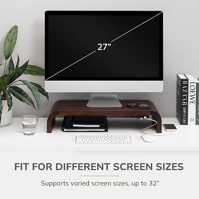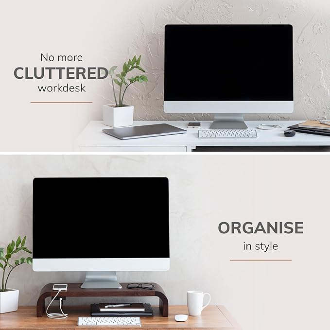 - COMPLEMENTS EVERY MONITOR DESK DECOR: These solid wooden monitor stands seamlessly integrate with any desk decor. They enhance the overall aesthetics of your workspace - be it modern, minimal or classic.