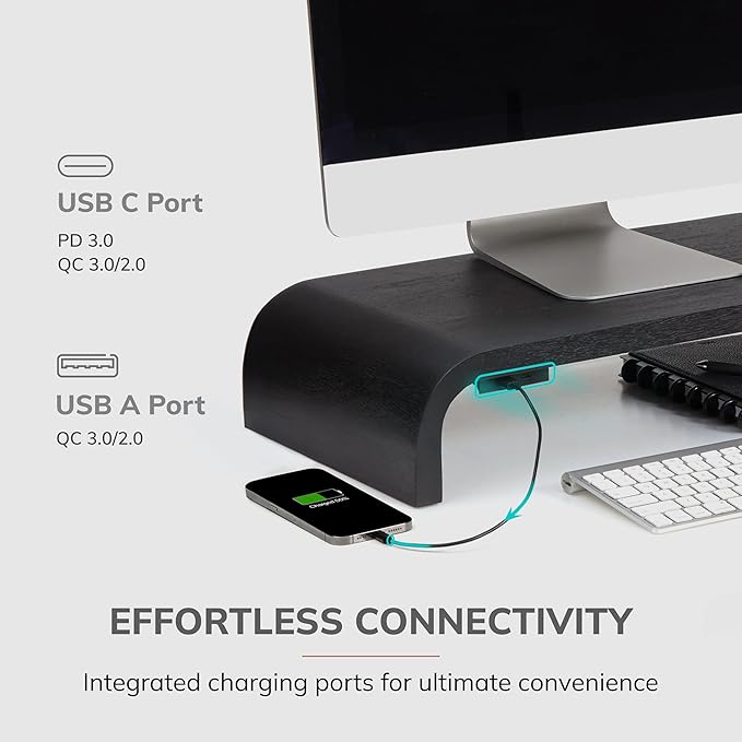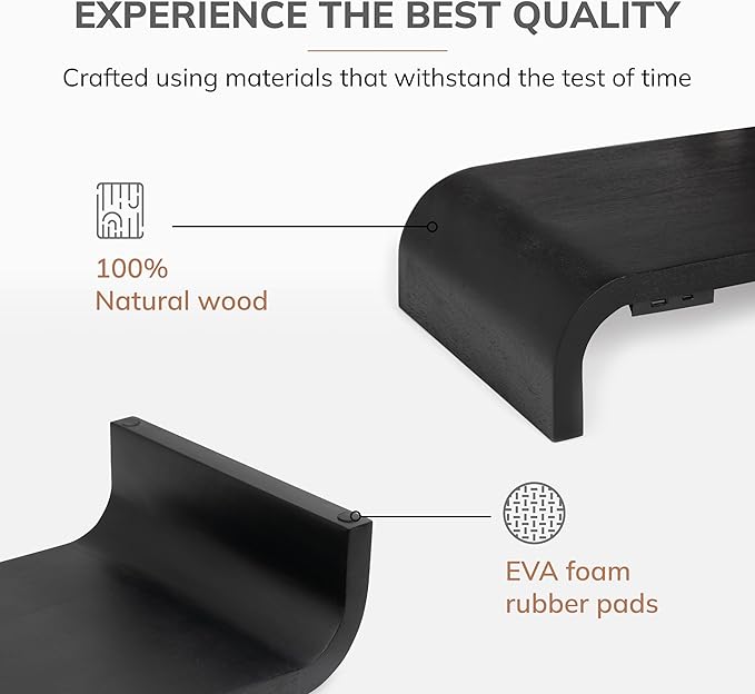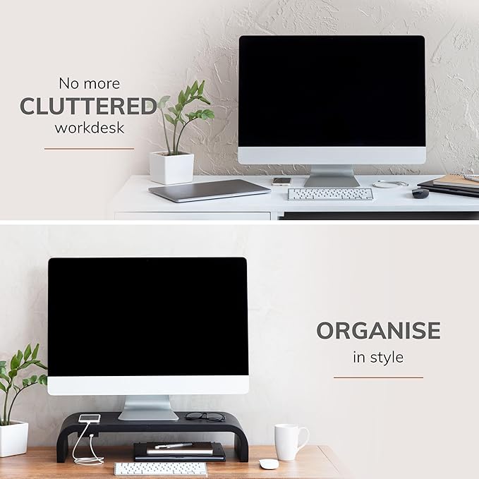 - COMPLEMENTS EVERY MONITOR DESK DECOR: These solid wooden monitor stands seamlessly integrate with any desk decor. They enhance the overall aesthetics of your workspace - be it modern, minimal or classic.