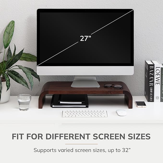 - COMPLEMENTS EVERY MONITOR DESK DECOR: These solid wooden monitor stands seamlessly integrate with any desk decor. They enhance the overall aesthetics of your workspace - be it modern, minimal or classic.