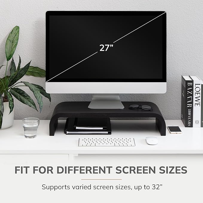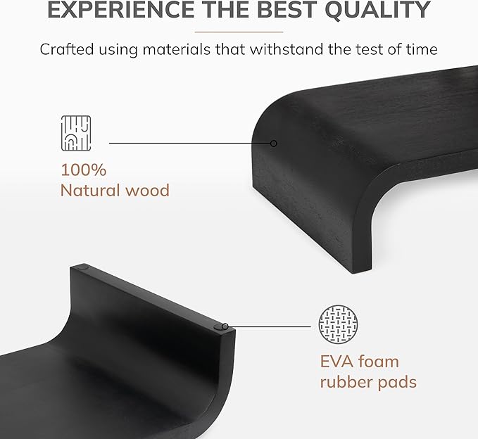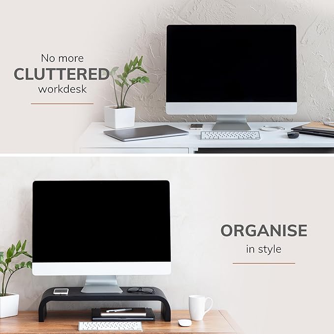 - COMPLEMENTS EVERY MONITOR DESK DECOR: These solid wooden monitor stands seamlessly integrate with any desk decor. They enhance the overall aesthetics of your workspace - be it modern, minimal or classic.