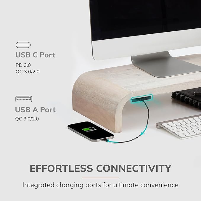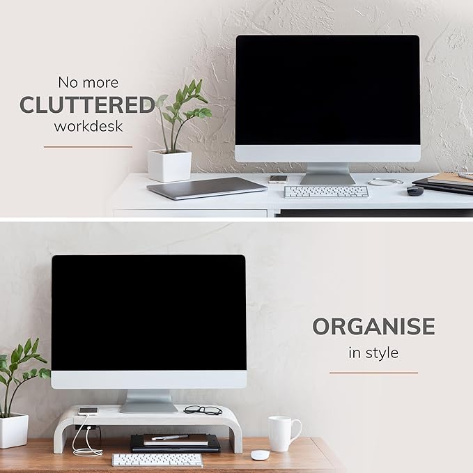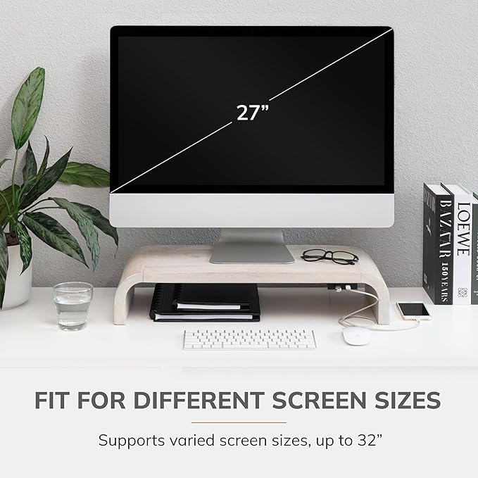 - COMPLEMENTS EVERY MONITOR DESK DECOR: These solid wooden monitor stands seamlessly integrate with any desk decor. They enhance the overall aesthetics of your workspace - be it modern, minimal or classic.