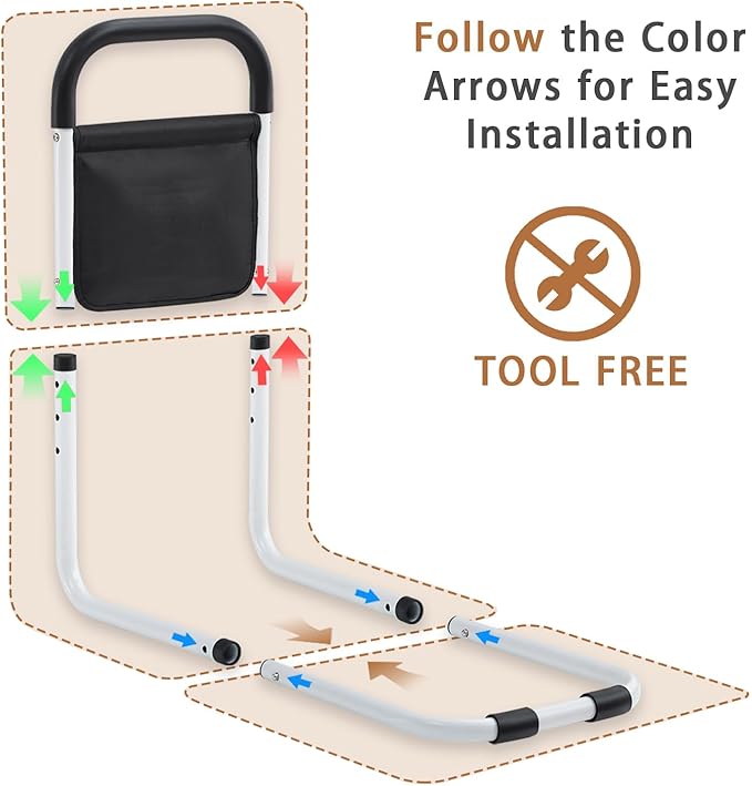 - 【Comfortable Non-Slip Handrail】Padded with soft, non-slip foam, our bed assist rail provides a secure grip. The mesh pocket offers handy storage for easy access to essentials.