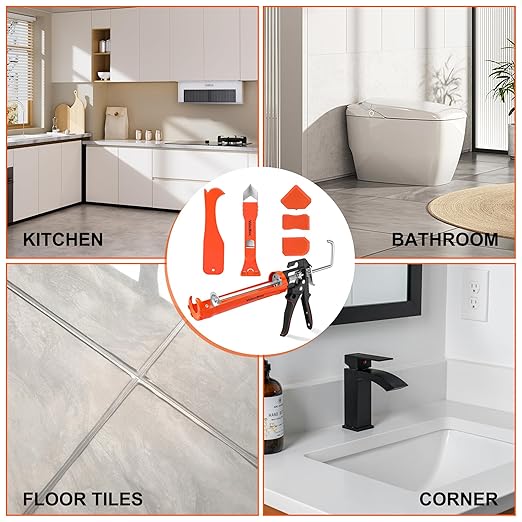 - Multi-Scene Application: This 10 oz sealant gun/grout gun(8:1 Thrust Ratio) and caulk scraper kits apply to all types of gaps and joints, such as windowsills, brick joints(to resist the earth breeze), toliet bottom seals,sink sides, etc