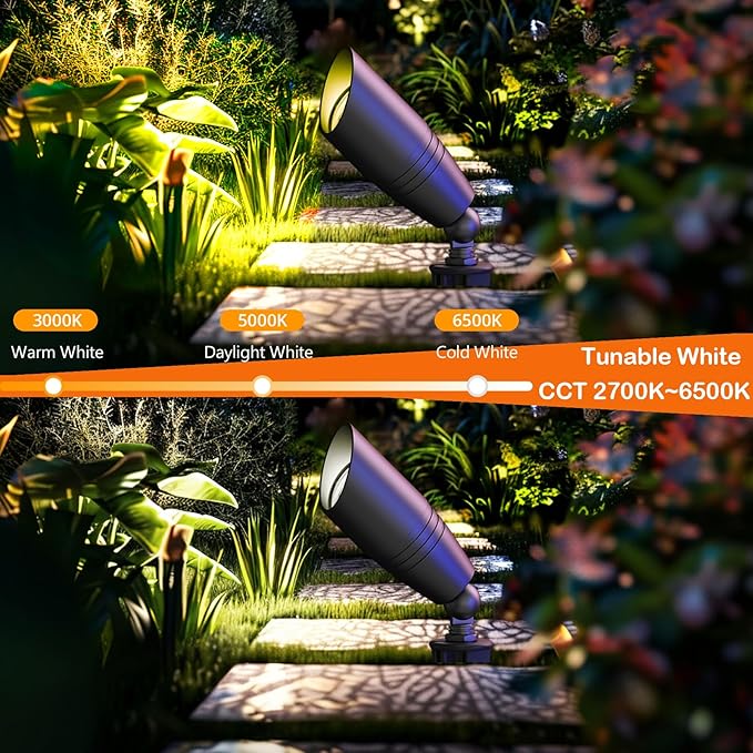 - CCT Color Temperature Changing: This 12V landscape lights comes in color temperatures adjustable kelvin 2700k-6500K tunable white from warm to cool. app or remote or voice control color changing/dimming/tunable white. Ideal for illuminating the house,garden, yard, patio,fence by creating ambient lighting. movie theater colors create elegant lighting during festive like christmas and halloween