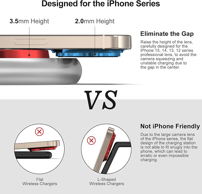 - ZINC ALLOY WIRELESS CHARGING PAD : Made of high quality zinc alloy material with excellent heat dissipation, the heat dissipation performance is more than 50% higher than that of plastic material, which allows us to charge faster and better protect the health of the battery.