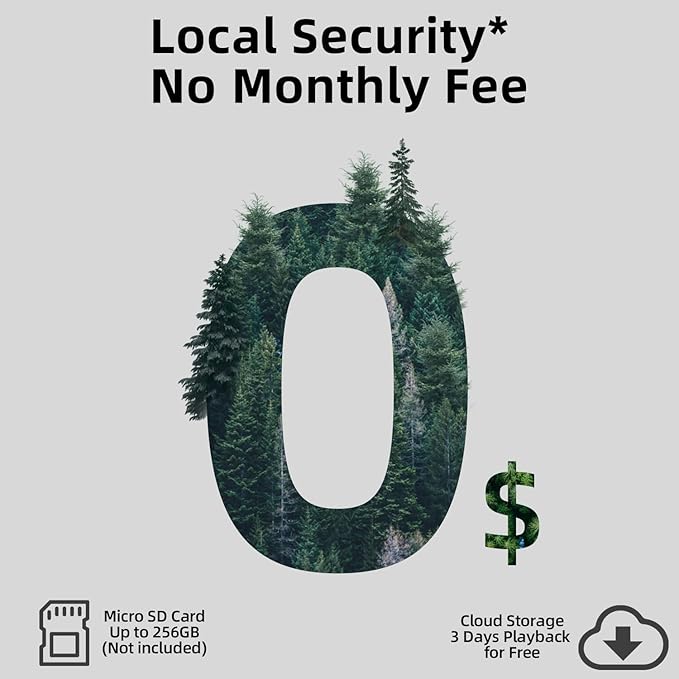 - 【Two storage methods & No Monthly fee】Install [O-KAM Pro] APP (IOS/Android) to set up the security camera. Free 1-day rolling cloud storage for life(No subscription is needed). The videos can be saved at Micro SD card card(NOT included, up to 256GB). If you have any questions with the camera, please find our customer service team on manual instruction.
