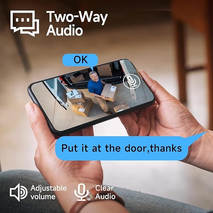 - 【2-way Talk & Device Sharing & Alexa】The camera also includes a high-quality two-way audio function that allows you to communicate with your family or guests from anywhere and at any time, or use Alexa to voice control the camera. Such as: communicating with the delivery man, warning burglars, or talking to your family and friends through the app. Share the device with up to 4 users simultaneously so that all the members can view the videos and protect them together.