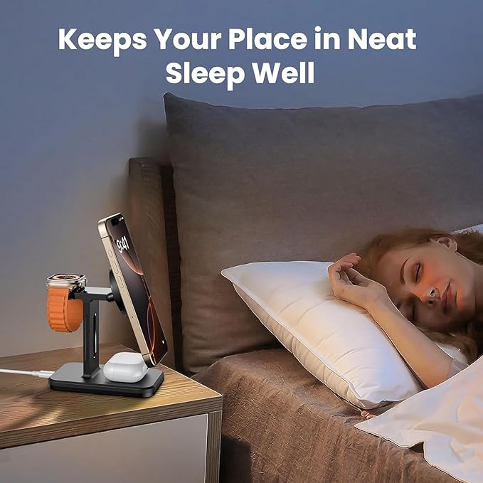 - 【3 in 1 Charging Station】all-in-one wireless charging station with dedicated spots made for your iPhone, for Apple Watch,and for AirPods/AirPods Pro, you can easily charge all your everyday accessories in one central location. Say goodbye to tangled cords and enjoy wireless charging by simply laying your phone on the charging stand, no more plug in/ out troubles.