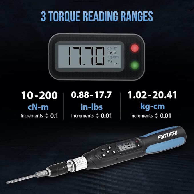 - 【Widely Applications】FIRSTINFO Digital torque screwdriver with ultra-precise torque settings let you work on electronics, computer equipment, and delicate instruments with ease and confidence.