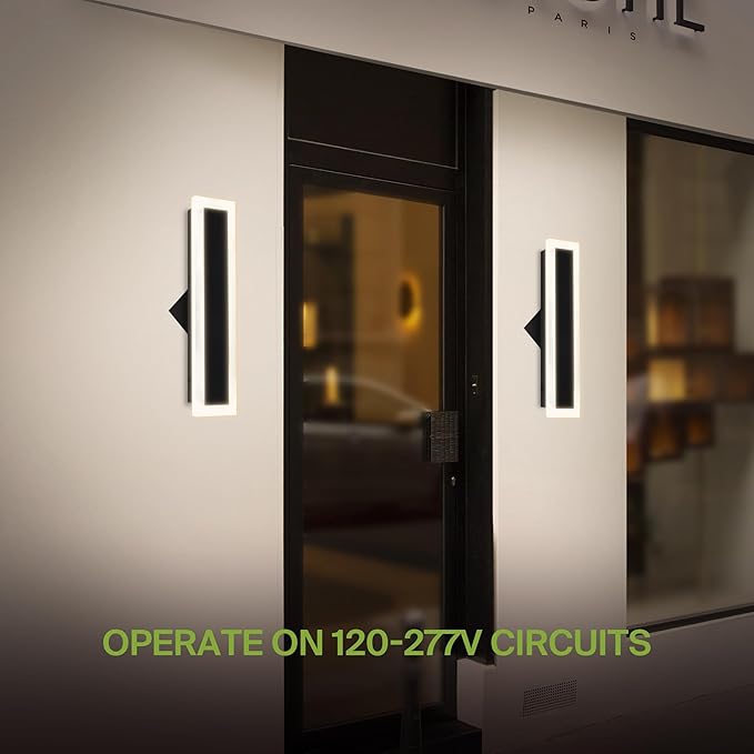 ASD LED 18" Long Wall Mount Light Fixture, Outdoor & Indoor Linear Sconce | 3CCT, Dimmable, Waterproof, Anti-Rust, ETL Listed | 18W 1500LM 3000-5000K 100-277V | Exterior Porch Lighting | Black, 2 Pack