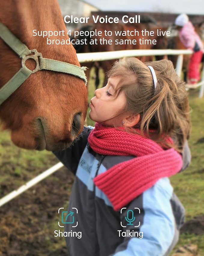- 2-Way Audio/Multi-Sharing : The outdoor security camera's remote access and 2-way talk features allow you to monitor your home and communicate with people near the camera. With the remote sharing function, you can share live footage with up to 4 family members or friends, enabling them to help monitor your home or property