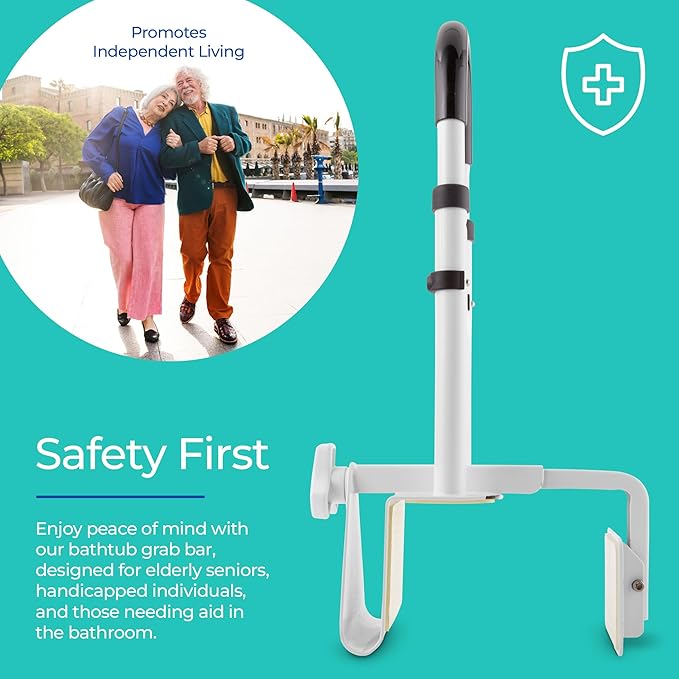 - Safety First: Enjoy peace of mind with our bathtub grab bar, designed for elderly seniors, handicapped individuals, and those needing aid in the bathroom. Our grab bars prevent slips and falls and promote independent living.