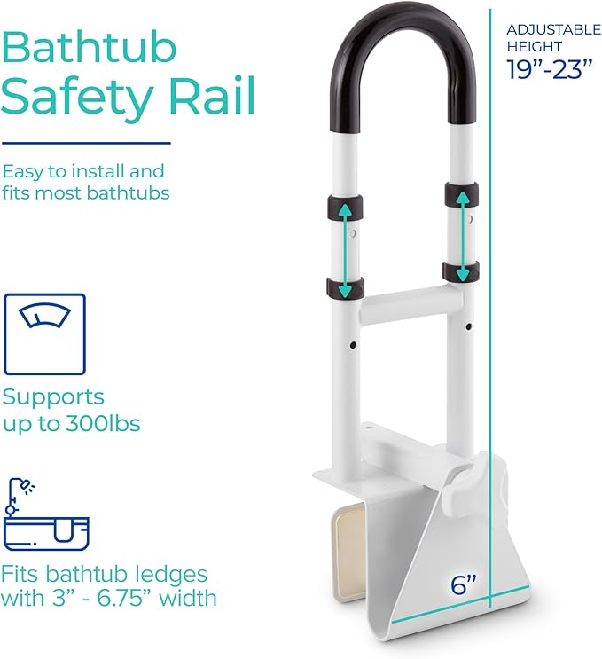 - Adjustable: Our bath safety grab bar is easily customizable to the user's preferred height and positioning for personalized support and comfort. The versatile design means compatibility with a range of bathtub styles and configurations.