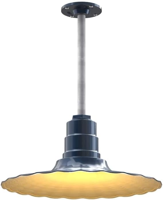 Steel Lighting Co. Eagle Rock Pendant | Ceiling Mounted Light | 16" Radial Wave | 12" Galvanized Stem | Heavy Duty Steel Retro Farmhouse Style Made in America | Gray Blue Exterior/Brass Interior